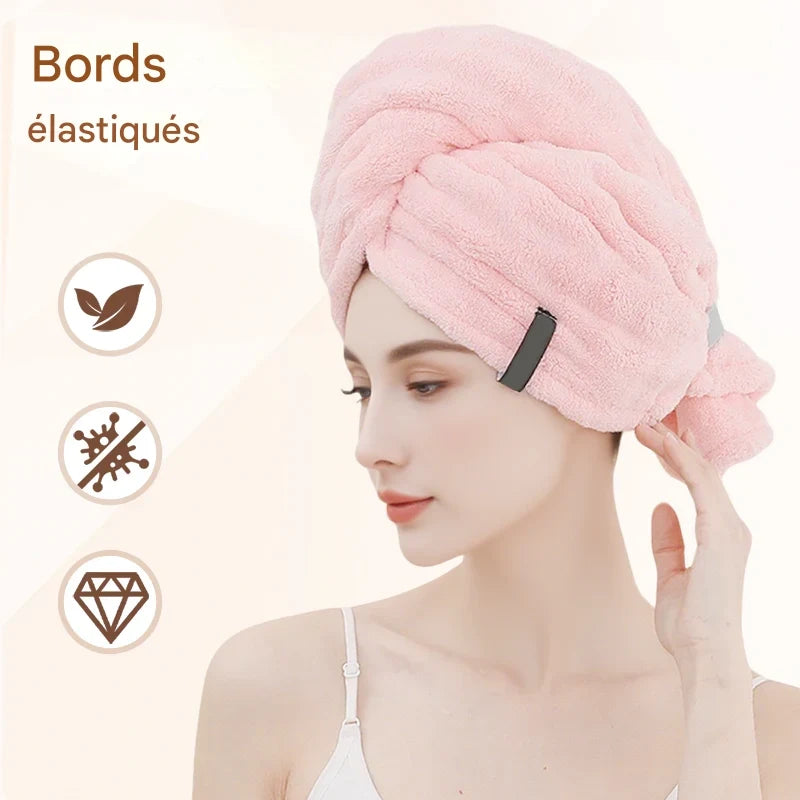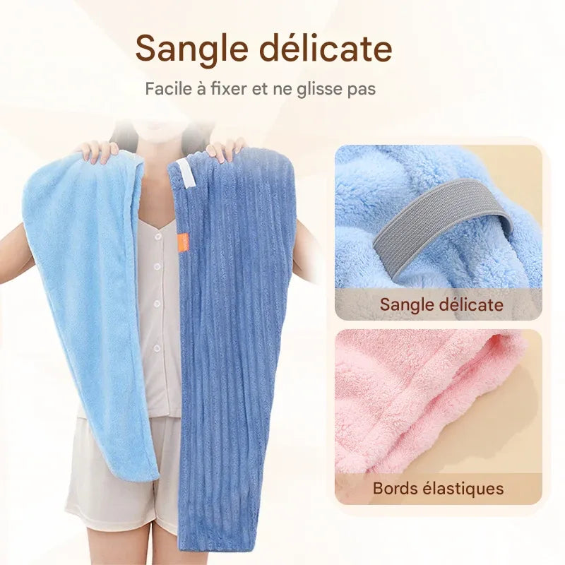 Lot de 3 _ Grande serviette à cheveux ultra-absorbante avec bande élastique ajustée – Idéale pour femmes