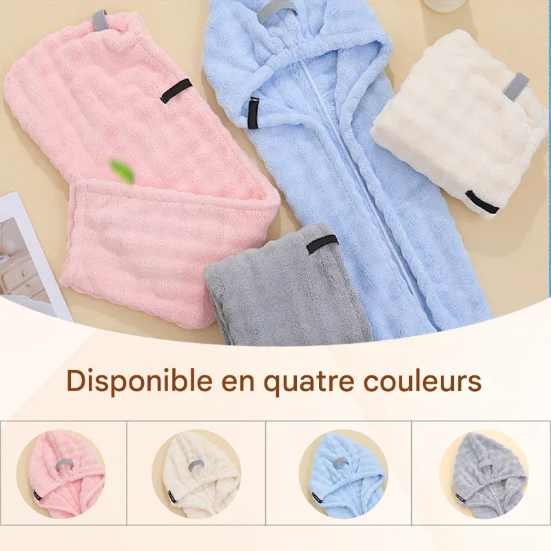 Sa texture moelleuse et dense offre une rétention d’humidité optimale, accélérant le séchage tout en préservant la douceur et la brillance de vos cheveux.