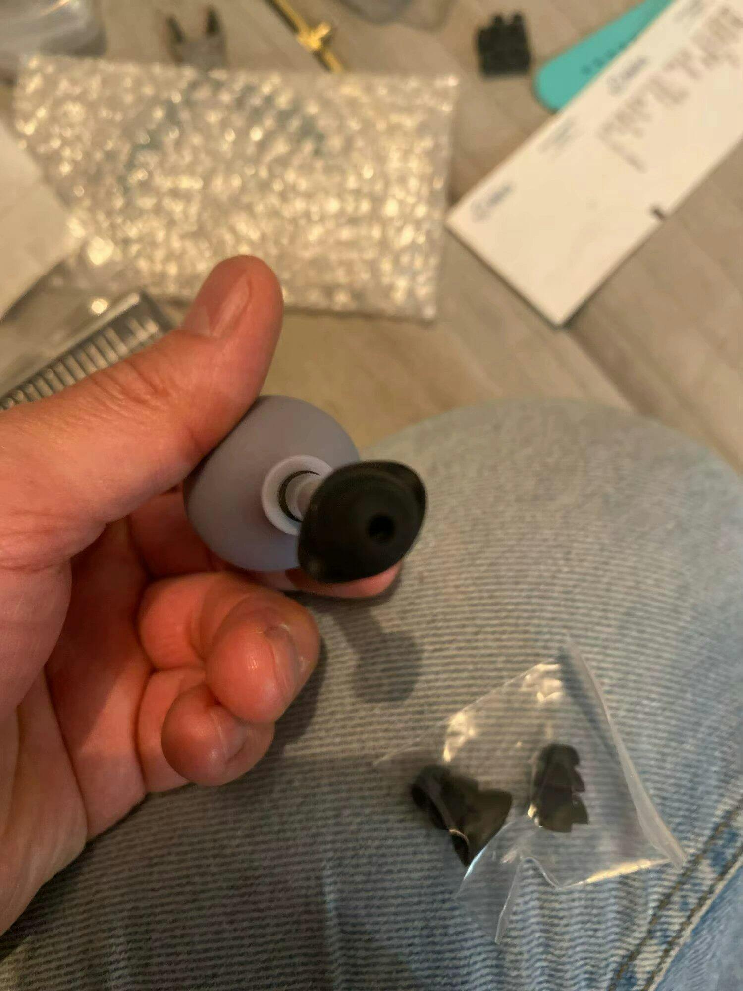 Tout en maintenant la poire dégonflée, placez NeuroPress™ à l’entrée du conduit auditif, comme un écouteur intra-auriculaire. Assurez-vous d’obtenir une étanchéité parfaite pour maximiser l’efficacité.