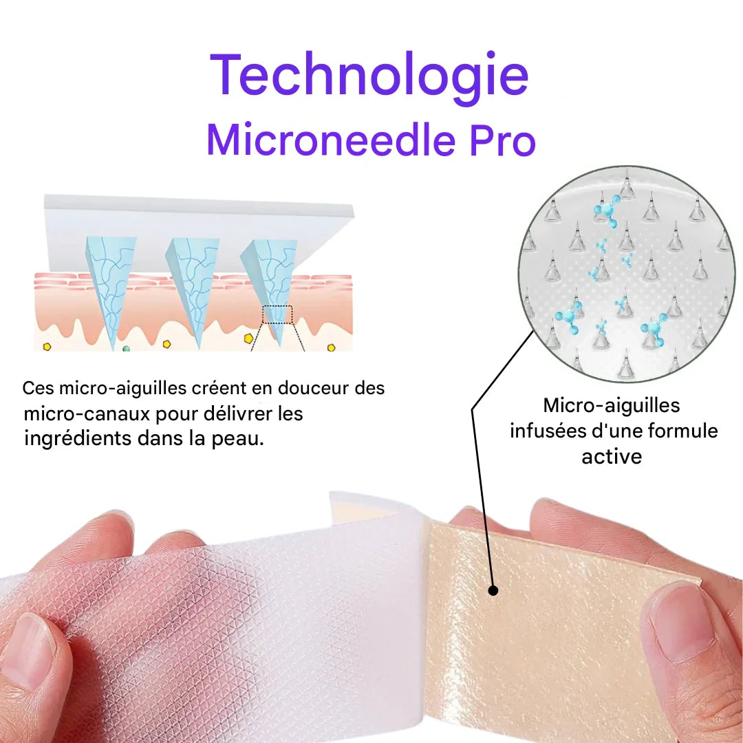 pas d’aiguilles, pas d’inconfort, seulement des nano-cônes ultra-fins et auto-dissolvants qui agissent en douceur.