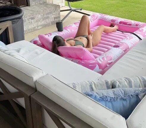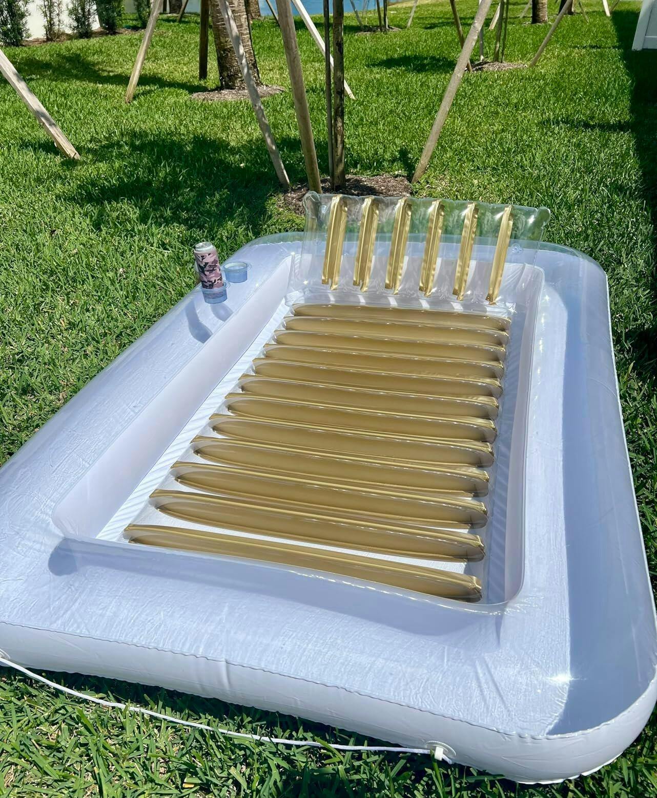 Oui ! Sa faible profondeur crée un effet miroir naturel qui renvoie la lumière sur ta peau, ce qui accélère le bronzage tout en gardant ton corps au frais. Beaucoup disent bronzer mieux et plus uniformément qu’allongés sur une serviette.